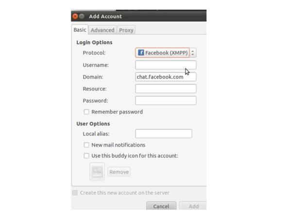 2. Isi bagian username (sesuai alamat facebook kamu) , Password, isi bagian resources dengan pidgin